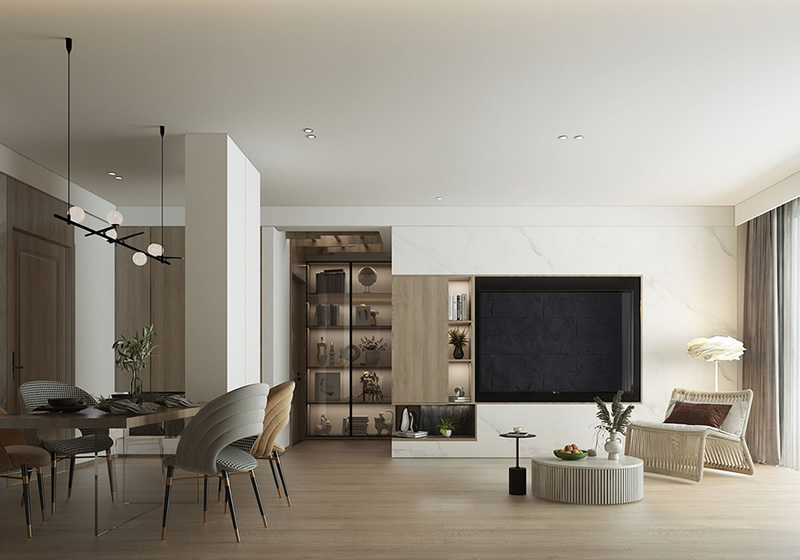 • 145㎡簡(jiǎn)約風(fēng)三人居 無(wú)主燈設(shè)計(jì)+仿石材真get